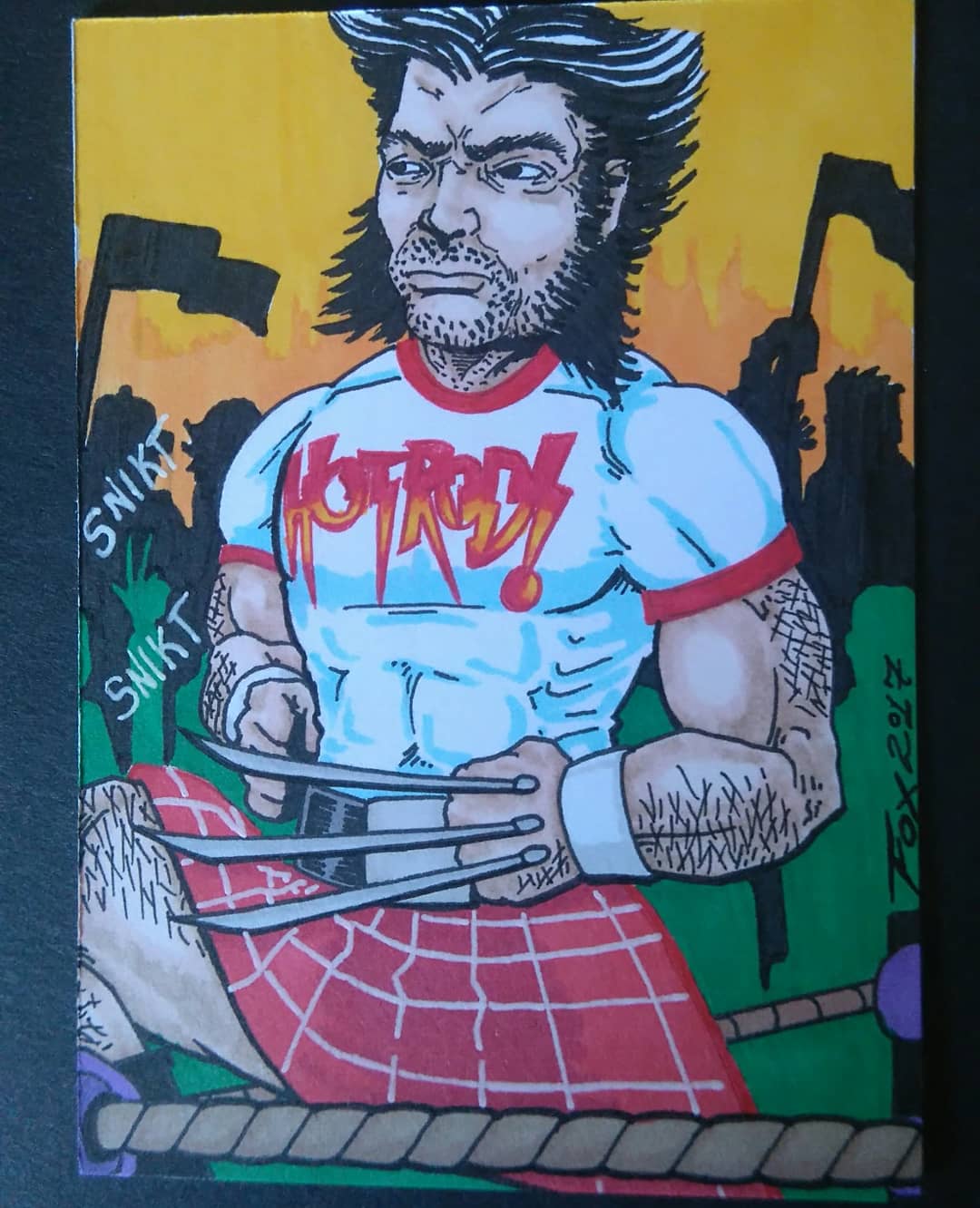 As a way to merge the two, wrestling and art, while giving back in some way, I’ve begun creating a wrestling inspired sketch card before each event. While I’m there I can an eye on the audience for a kid who looks like he’s loving wrestling as much as I did. The kid gets a souvenir to remember the event and I get a smile. Sounds like a fair trade from a fan to a fan.